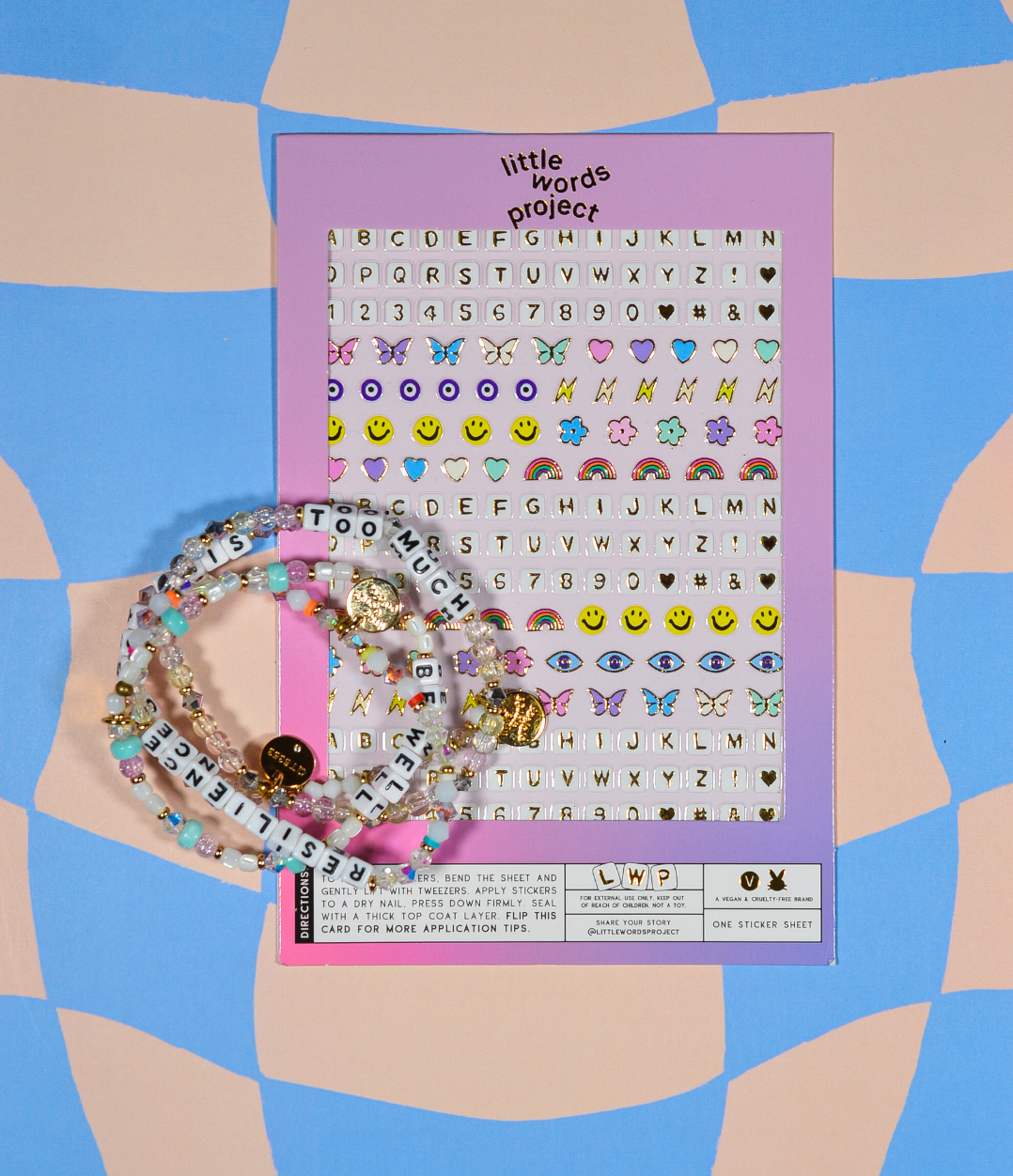 Jules has been a long time Dagne Dover fan and it was ✨serendipitous✨ when the stars aligned around this sheet. This collab was made for their spring launch, featuring beachy gradients and sunny day designs.