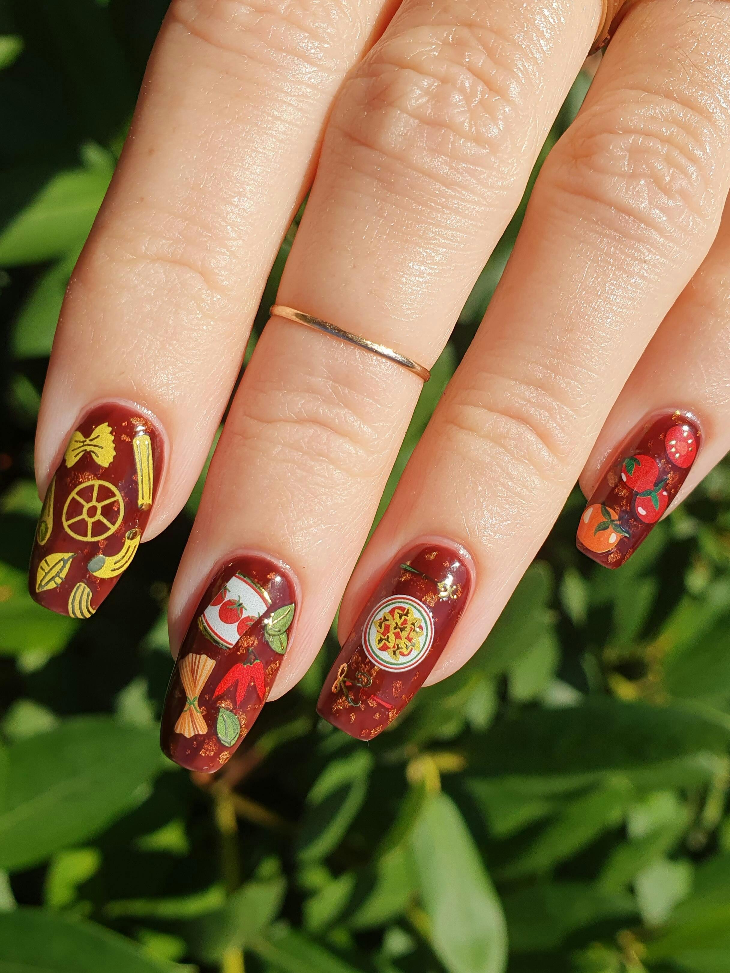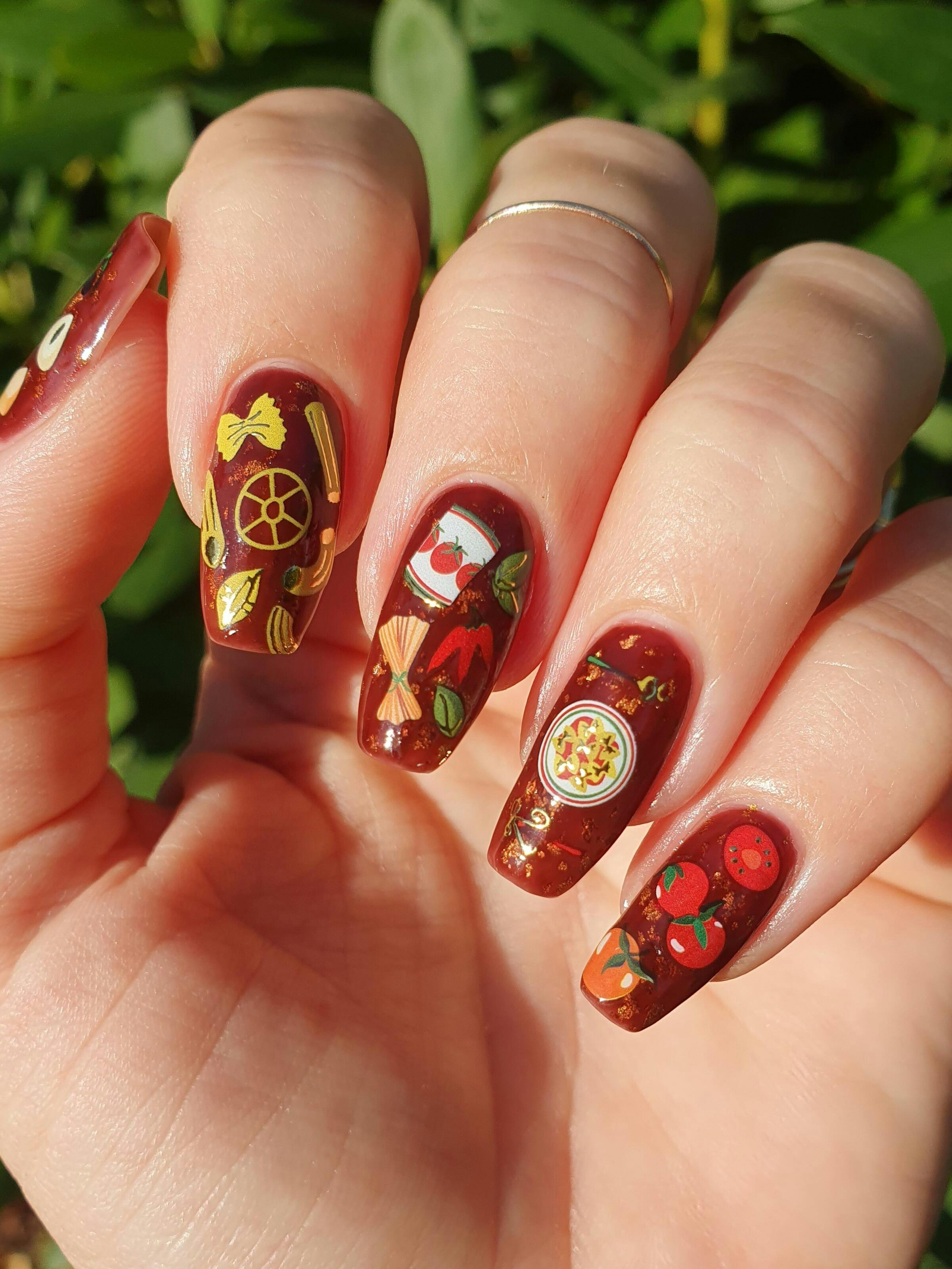Our love letter to pasta night. Featuring bowties, spaghetti, wine glasses, and other Italian favorites, Al Dente is the ultimate recipe for cozy, carb-loving nails. π·π