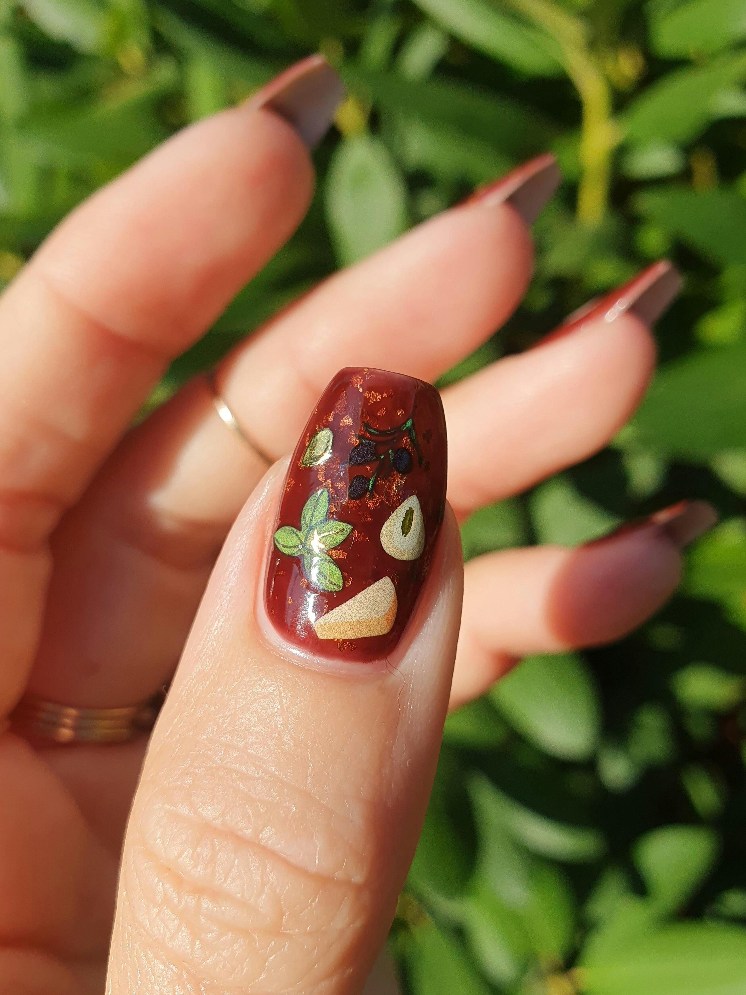 Possibly my favorite sticker sheet to date. The tiny pasta shapes are too darling, I can hardly stand it. All stickers were super easy to handle and place. With so many ingredients, I could assemble a different Italian dish on each nail! For those who love Italian cooking or food nail art, this sheet is a must! Tutto Perfetto!