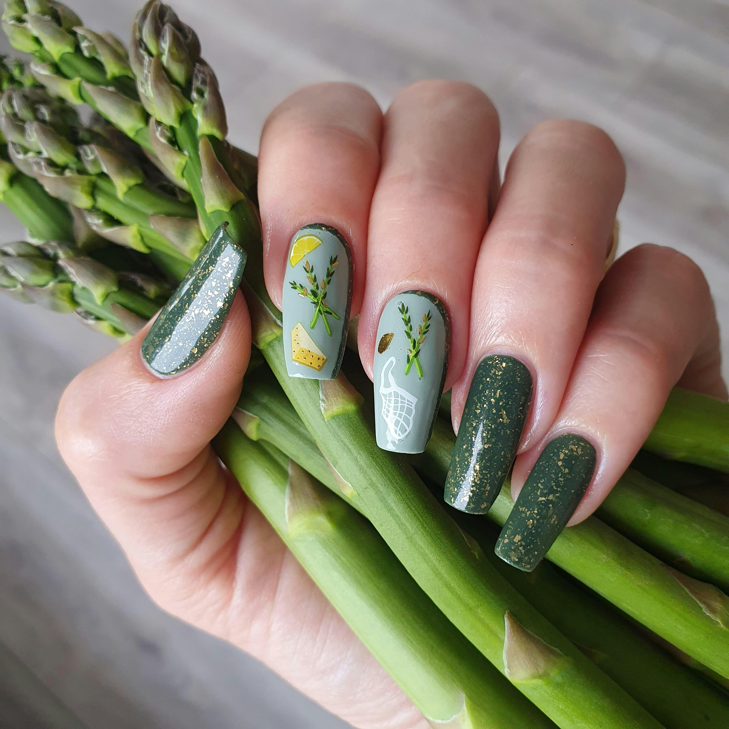 Certainly a top sticker sheet for me! I adore food nail art and this sticker sheet makes flawless food nails! I really appreciate the various sizes of the designs and the wide breadth of food options! (and the gold accents!) Where else are you going to find nail stickers of asparagus?? Only Deco Beauty, obv.