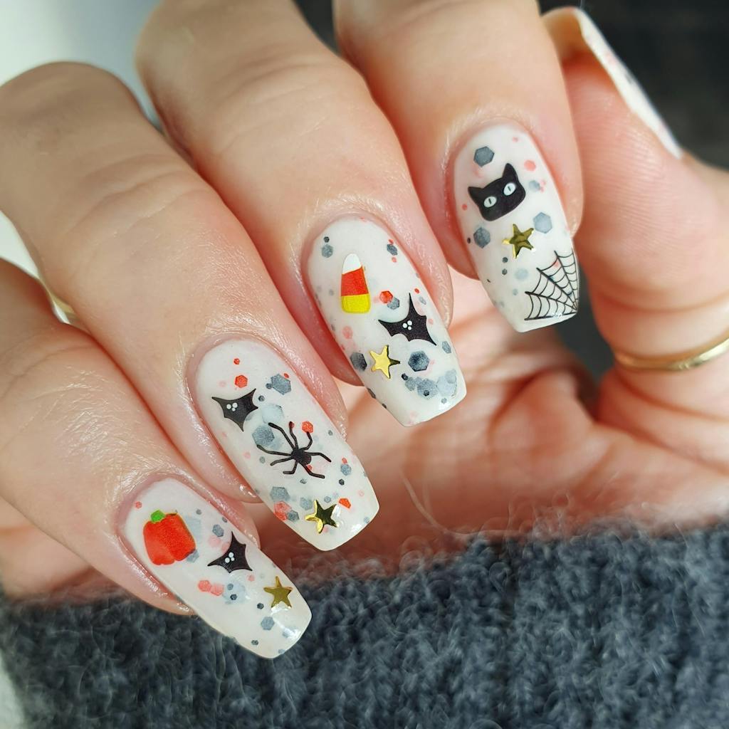 These may have been one of my first sheets of Deco stickers and still one of my favorites. The ghosts are a favorite, but I love doing a chaotic vibe with as many stickers artfully placed for a full manicure. I will need a new sheet for next season!
