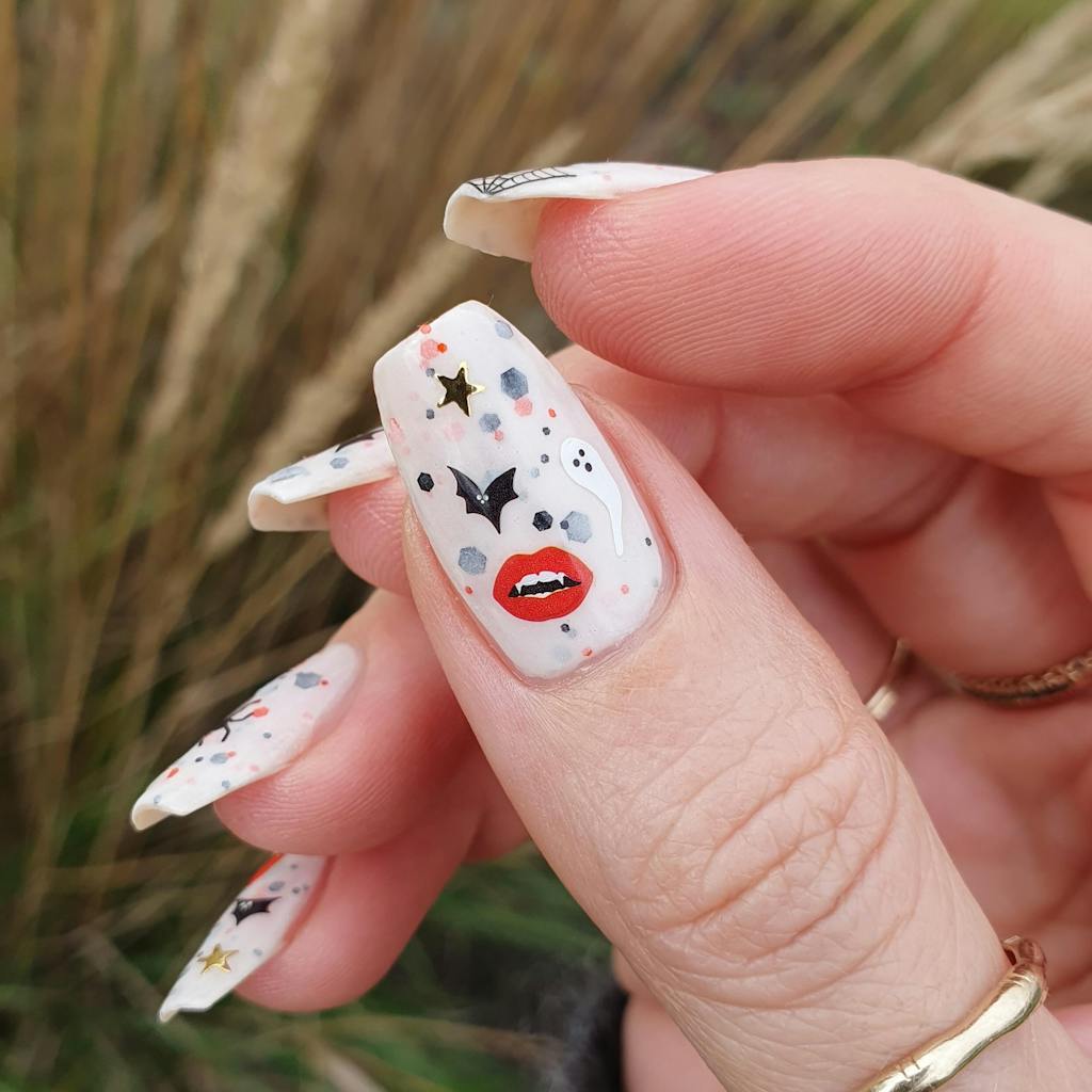 I love these stickers and this fun Halloween theme! So many options and love the simple vibe I did to add on to a week old mani. Totally recommend these! They last me 2 weeks (that’s when I change colors) but I’m sure would stay on longer!